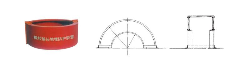 橡膠軟接頭的位移性能,又能使橡膠軟接頭與外部填土隔離,還能使管道在該裝置兩端自由滑動,不產(chǎn)生阻力,管線安裝完畢后經(jīng)回填實(shí)地面照樣平整如初。車輛行駛堆放重物或安裝設(shè)備不受影響。此地埋裝置為兩個半圓形中空組合而成,將橡膠頭和管道平焊法蘭全部裝入體內(nèi),兩端設(shè)有兩個半圓形小平面帶鋼騎于兩側(cè)法蘭外管壁,兩端立接面支撐根據(jù)土層深度而定,足以承受外壓負(fù)重。該裝置配有一定數(shù)量對合鎖緊螺栓,以備安裝完畢后裝配。其安裝方法為:安裝橡膠軟接頭→保護(hù)裝置內(nèi)涂瀝青防銹漆→安裝下部1/2保護(hù)裝置→放上上部1/2保護(hù)裝置→旋緊對合鎖緊螺栓(注意安裝時要使橡膠軟接頭確保處于裝置中心位置→保護(hù)裝置外涂瀝青防銹漆→回填原土,下部搗實(shí),上部實(shí)→三合一和墊層→鋪設(shè)地面(好在適當(dāng)位置設(shè)有持續(xù)性標(biāo)志,以備以后檢查更換時確定位置)。