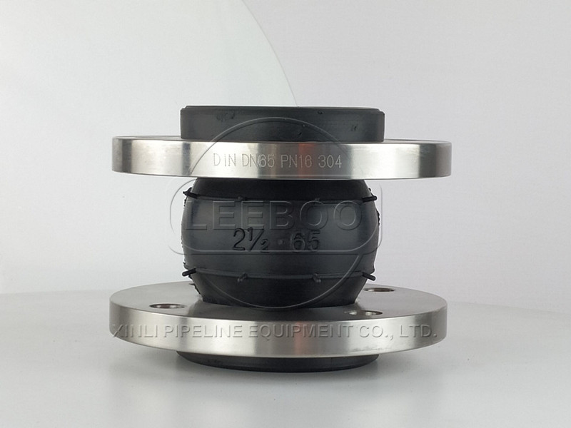 為了避免設(shè)備壓力瞬間升高造成球體爆;破,球體外配置有增壓圈,法蘭兩端配置有限位裝置,防止管道壓力升高產(chǎn)生超限徑向位移,從而起到保護(hù)設(shè)備的作用。本公司在原有的管道橡膠接頭的基礎(chǔ)上改進(jìn),滿足了原有管道橡膠接頭存在的弊端。