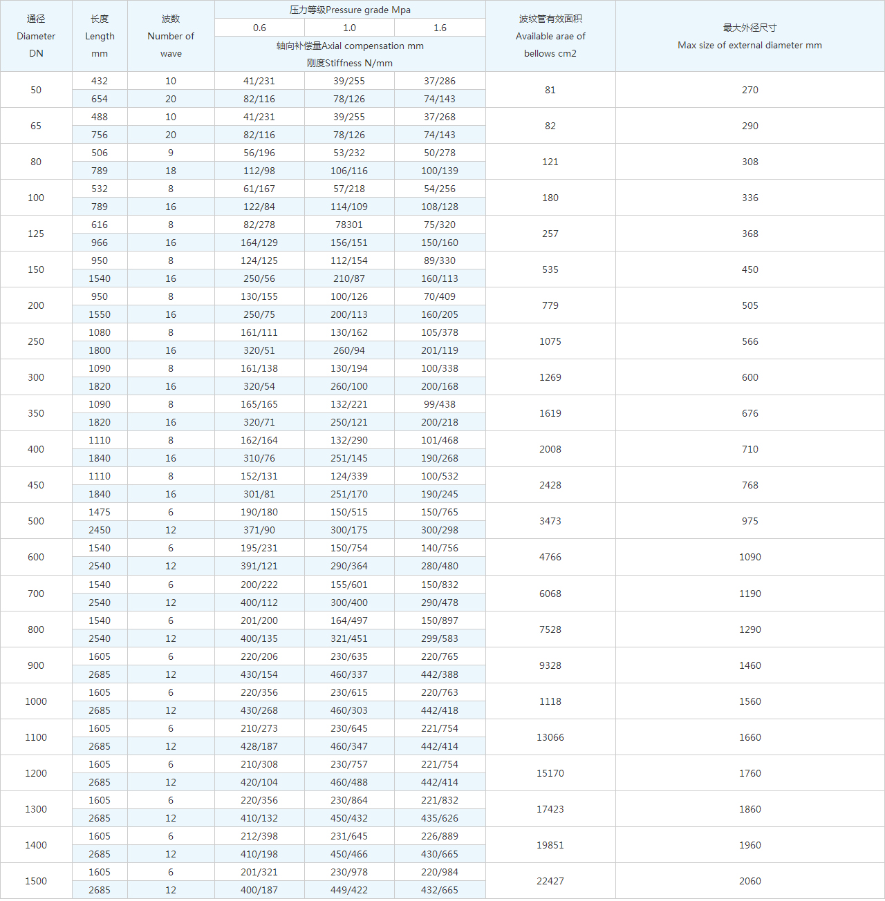 軸向補(bǔ)償量Axial compensation mm 剛度Stiffness N/mm |