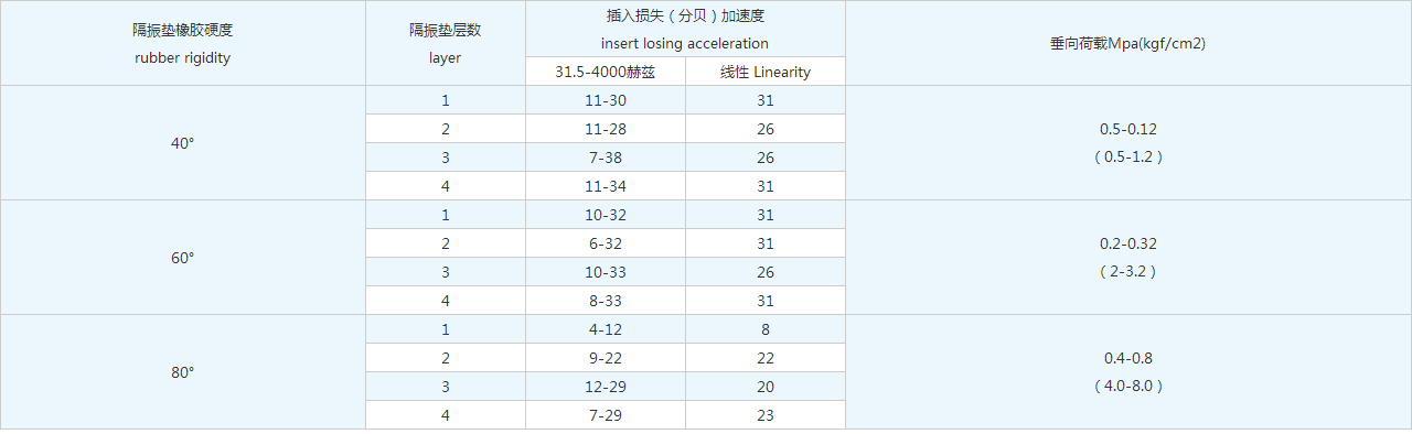 3:對(duì)儀器儀表的消極隔振效果良好,對(duì)沖床、鍛床等沖擊機(jī)械的高頻隔振效果更為明顯。